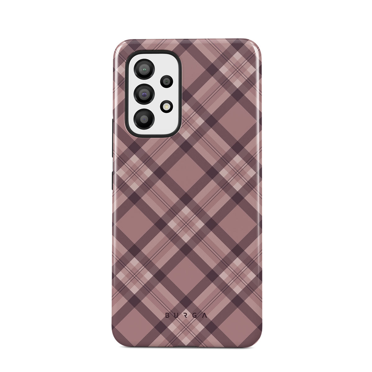 Made for those who hustle hard and look sharp. Our ASAP Samsung Galaxy A33 phone case design features a sleek rosé-gray background with diagonal plaid in soft grey and deep pink—mixing modern flair with understated elegance. For the pros who know that style and speed go hand-in-hand.