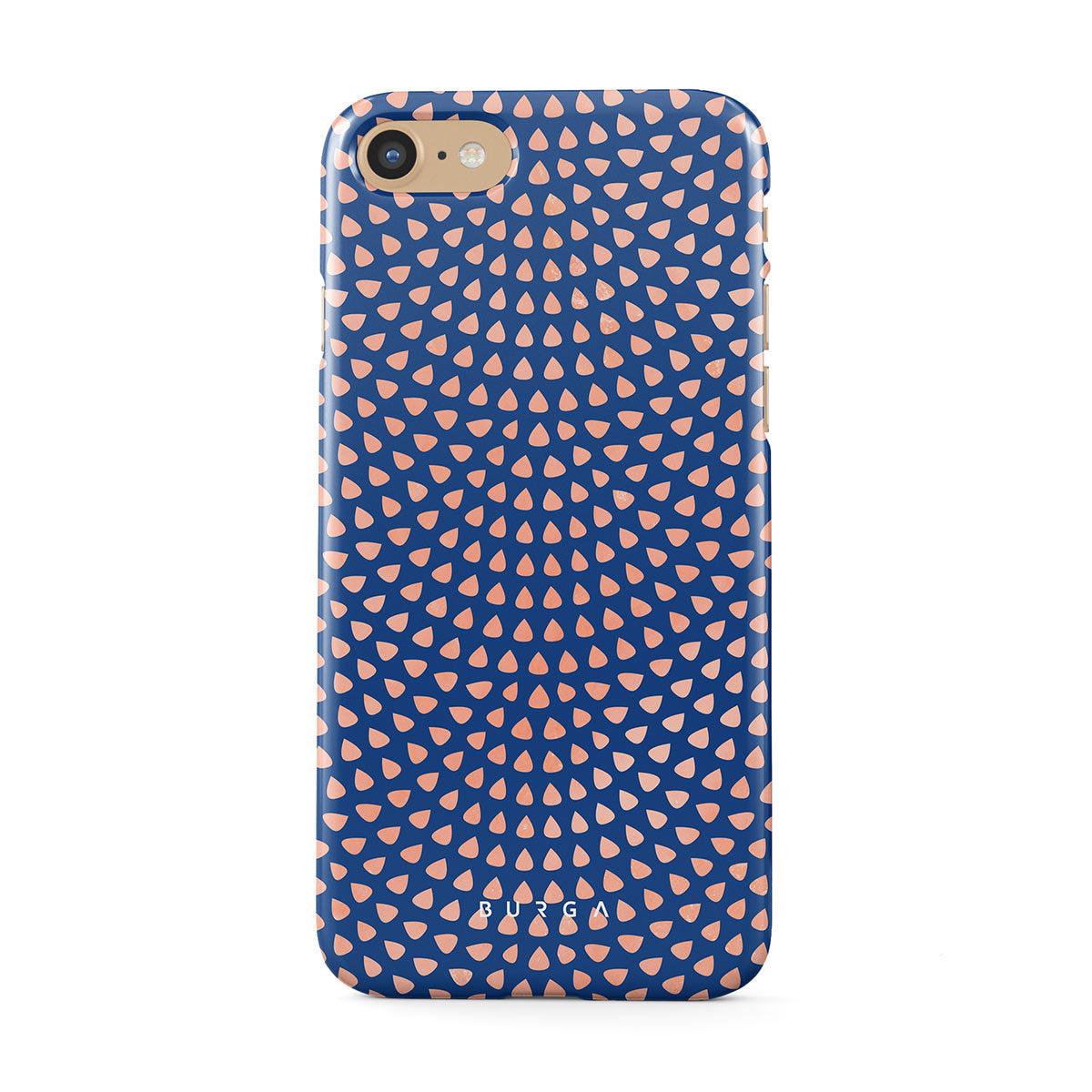 Rose gold teardrops meet a deep shade of blue in our Azure Waters iPhone 7 / iPhone 8 phone case and create the duo worth taking with you every evening out. Add a touch of strictness with the symmetrical teardrops pattern paving the way and keeping your phone out of harm's way with the case that is as protective as it is beautiful.