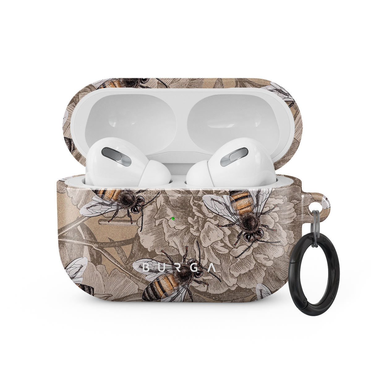 The soft color palette and unique bee pattern of the Apple Airpods Pro case cover is a true eye-catcher. Keep a busy bee by your side to give you some motivation and improve your accessory game, no need to stay BEEhind the fashion curve. Our case fits perfectly snug around Apple Airpods Pro . “Like a glove!” one might say. And it won’t disrupt the wireless charging capabilities of the newer model. There’s even an LED light indicator to prove it (don’t worry, wired charging still works, too). When fitted, the BURGA case will protect the delicate Apple Airpods Pro case beneath it from scratches, bumps, and drops while remaining scratch-free itself. Our signature design pattern prints are High Quality, and will never peel or fade away- thanks to our unique printing technology. And finally, a handy carabiner is there to make your life easier and more convenient: just snap it around your keys or belt loop and tackle the day head-on. Your music is right there by your side when you need it.