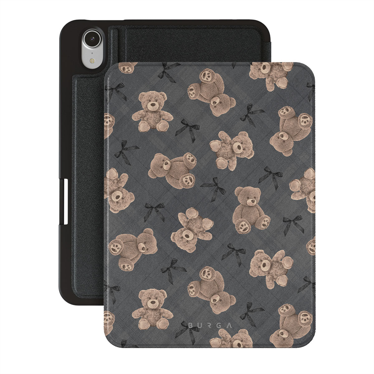 A design blending innocence and sophistication. With teddy bears and a chic gray background, BFF is a throwback to the comforting nostalgia of youth, updated with a touch of modern glam. This design will make you and your iPad Mini 8.3 (A17 Pro/6th Gen) 2021 folio case inseparable companions, just like the best of friends.