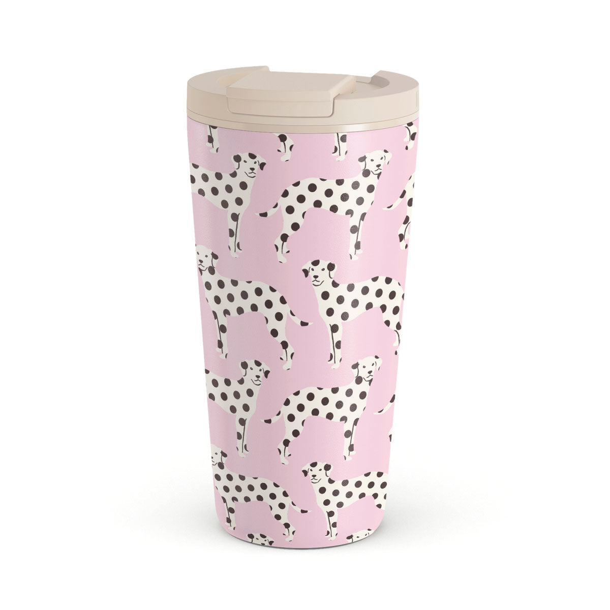 This design features: dalmatians on a baby pink background, dogs.