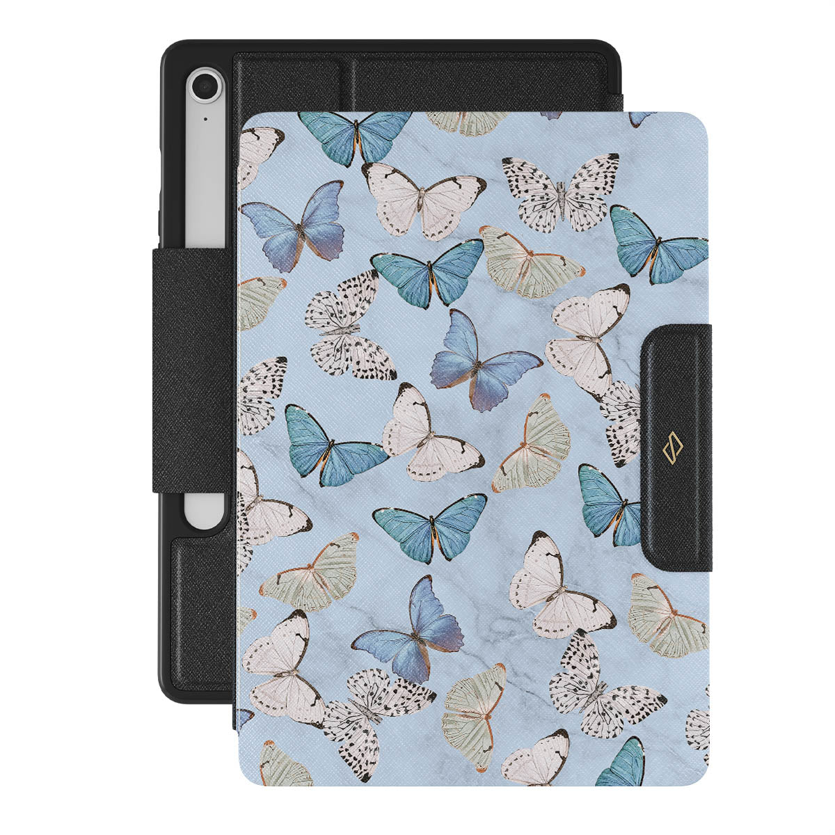 Pastel blue and a playful pattern of summery butterflies create a dreamy combination in our Samsung Galaxy Tab S10 FE folio case. Carry the feeling of the butterflies in your stomach while protecting your Galaxy Tab from any dangers, as the hard-shell case will keep it sound and safe.