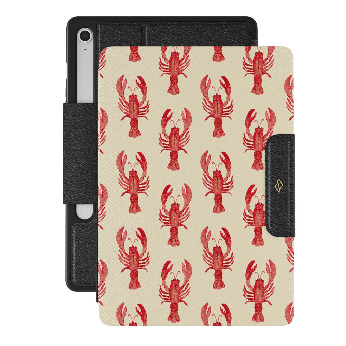 This design features: red lobstersFeatures