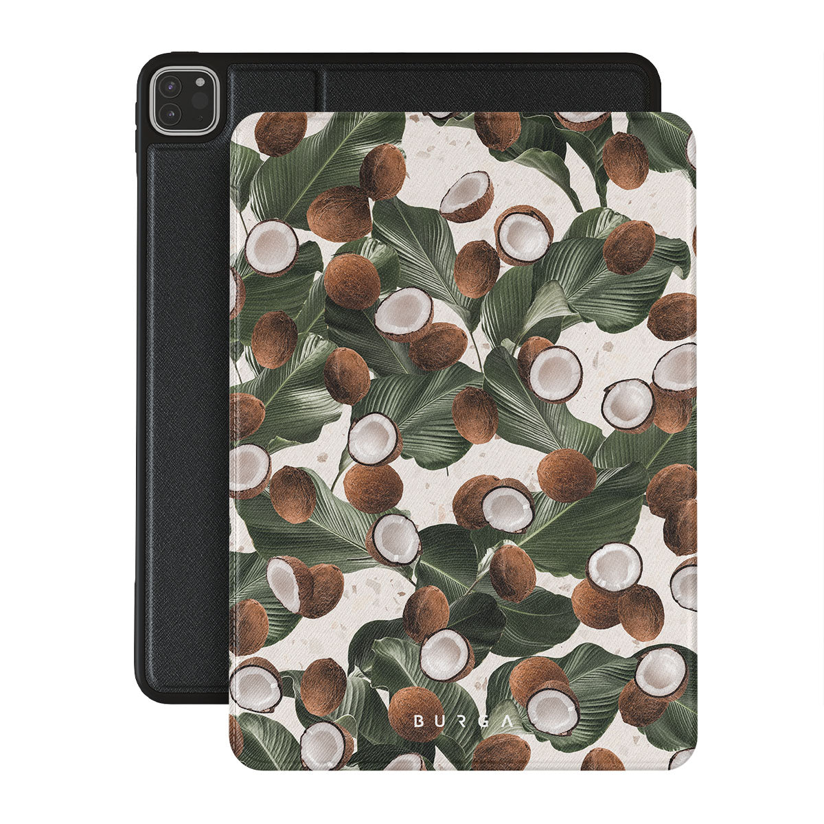 Coconut Crush iPad Pro 12.9 (6th/5th Gen) folio case showcases a soft creme color design with a playful addition of coconuts on top. The unexpected design duo will add a touch of tropical playfulness to your style while offering heavy-duty protection for your cell iPad.