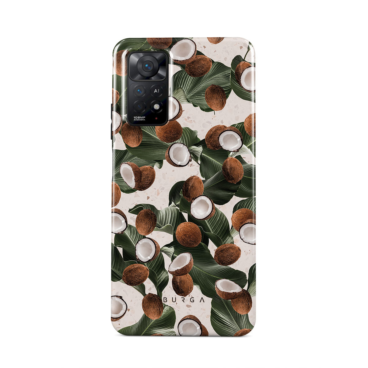 Coconut Crush Xiaomi Redmi Note 11 Pro phone case showcases a soft creme color design with a playful addition of coconuts on top. The unexpected design duo will add a touch of tropical playfulness to your style while offering heavy-duty protection for your cell phone.
