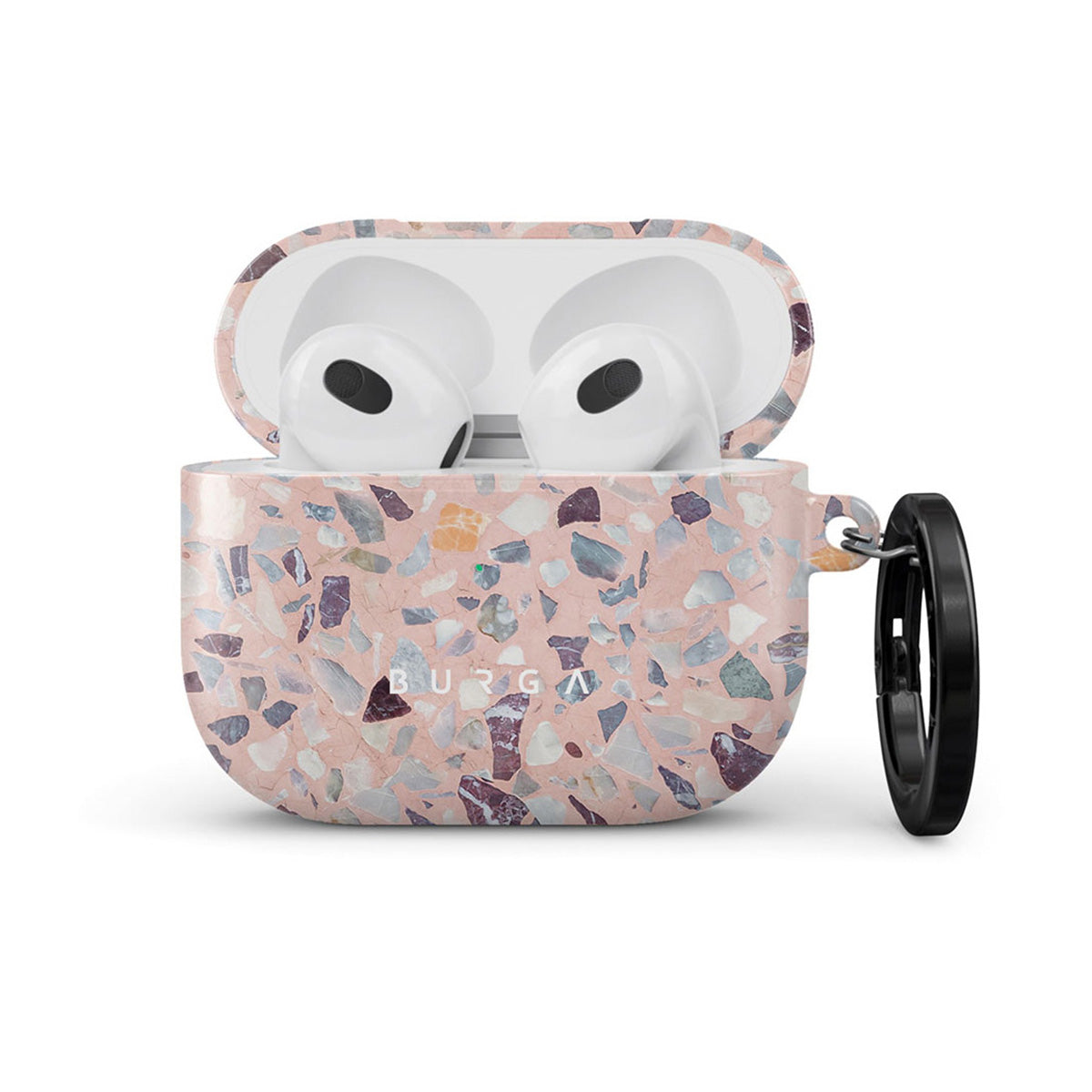 This terrazzo-inspired and very colorful Apple Airpods 3 case cover will definitely add some playfulness to your device and your style. With the colorful specks reminding of crushed candy, you will make your AirPods stand out. Our case fits perfectly snug around Apple Airpods 3 . “Like a glove!” one might say. And it won’t disrupt the wireless charging capabilities of the newer model. There’s even an LED light indicator to prove it (don’t worry, wired charging still works, too). When fitted, the BURGA case will protect the delicate Apple Airpods 3 case beneath it from scratches, bumps, and drops while remaining scratch-free itself. Our signature design pattern prints are High Quality, and will never peel or fade away- thanks to our unique printing technology. And finally, a handy carabiner is there to make your life easier and more convenient: just snap it around your keys or belt loop and tackle the day head-on. Your music is right there by your side when you need it.