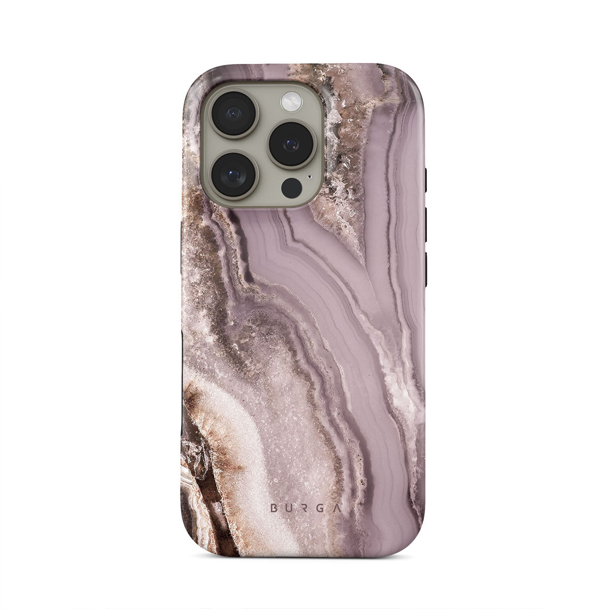 Make a fashion statement with iPhone 16 Pro Max phone case that reminds of a geode in the softest mauve shade. A phone case that is both pretty and protective is a best friend of a fashion lover.