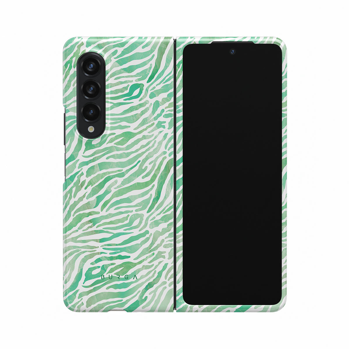 Our Free Spirit Samsung Galaxy Z Fold 3 phone case features an exotic zebra pattern in varying shades of green. Keep your spirits up, as there is no need to worry about your phone, as this trendy case is not only pretty but offers the heavy-duty protection that your cellphone requires.