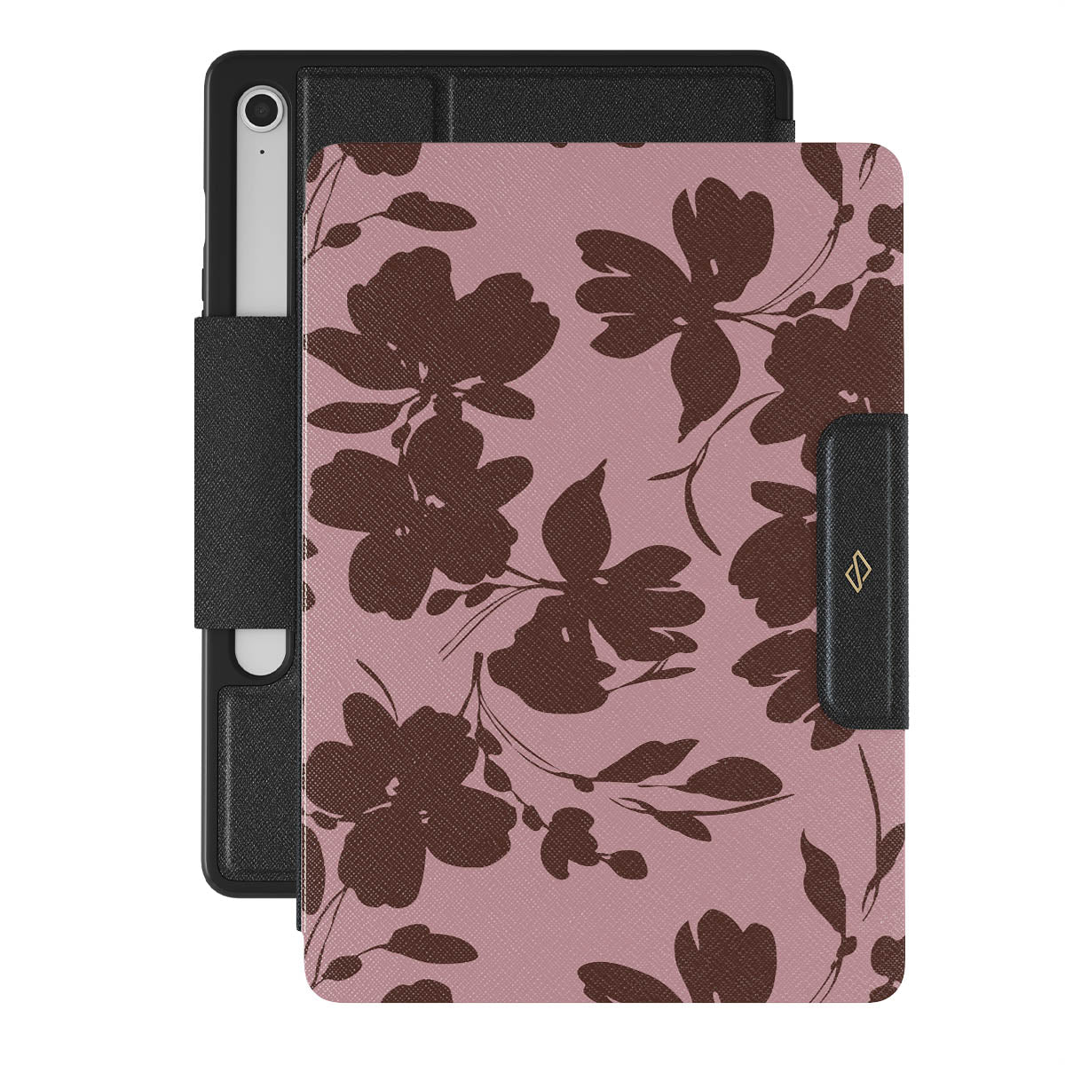 Quietly bold, our Gossip Samsung Galaxy Tab S10 FE folio case design speaks volumes in subtlety. A soft rosé background, layered with deep red-brown floral accents, gives off a refined, almost mysterious vibe. It's for those who let the details do the talking.