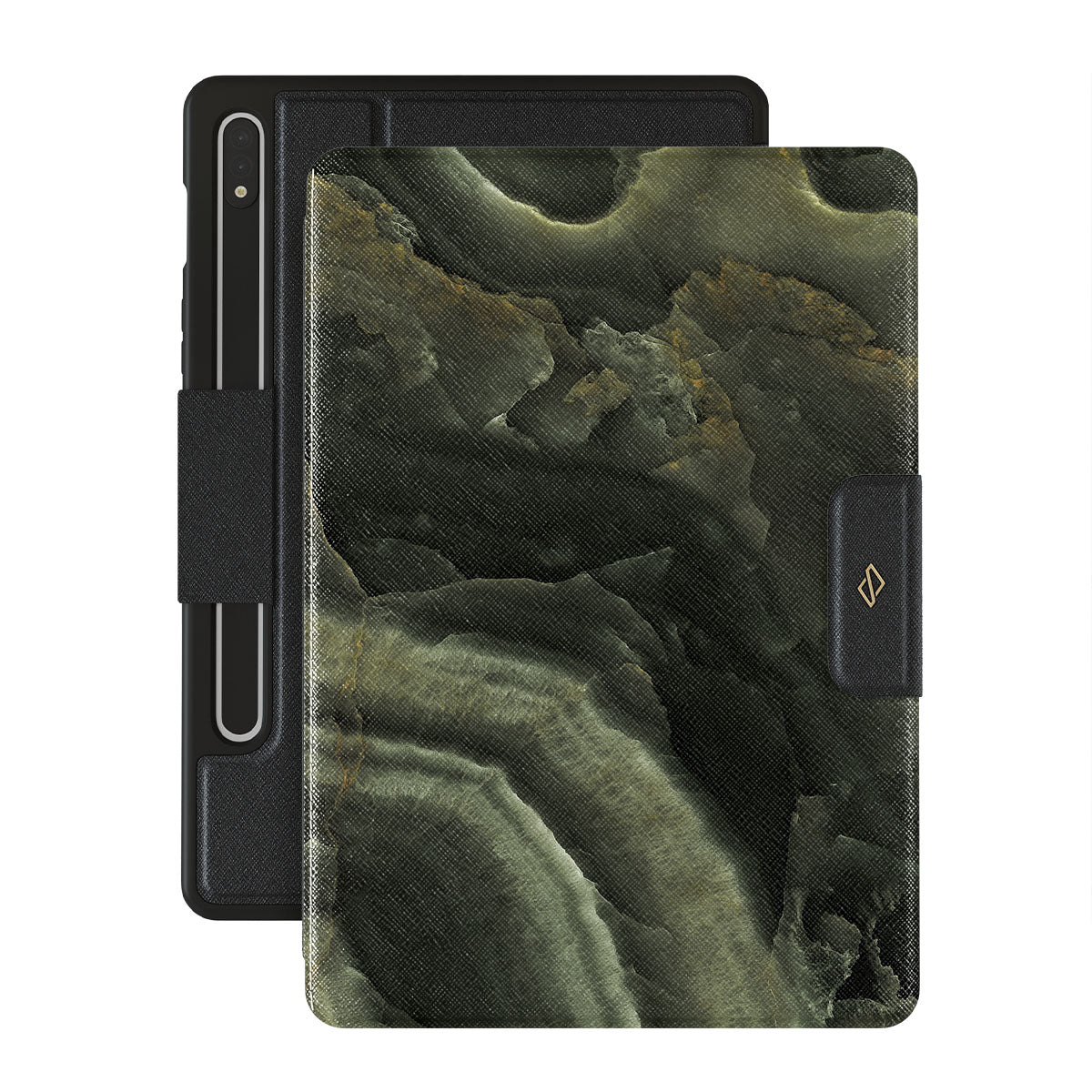 Carry the mystery of unexplored land found in an ominous misty forest with a green marble Samsung Galaxy Tab S8+/S7+/S7 FE folio case inspired by it. The case combines the popular marble trend with heavy-duty protection becoming a unique companion to your device.