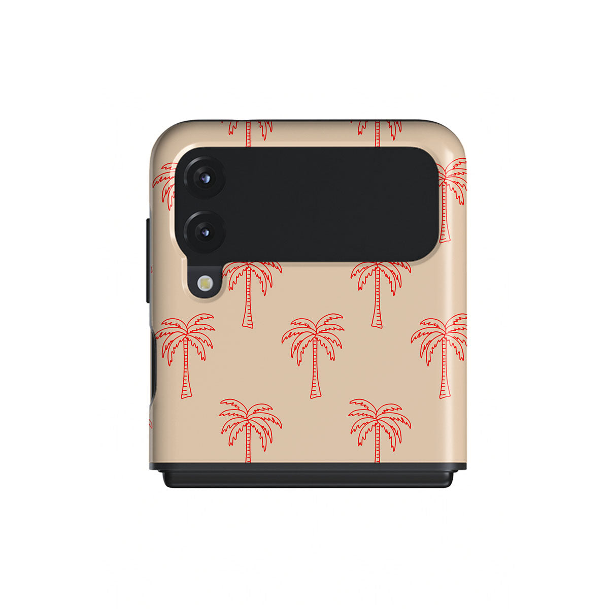 Retreat into the serene whispers of our Happy Hour design. Gentle pink palms sway on a soothing blush background, creating images of a tranquil paradise. This Samsung Galaxy Z Flip 3 phone case is perfect for dreamers and nature lovers who seek a daily escape into tranquility.