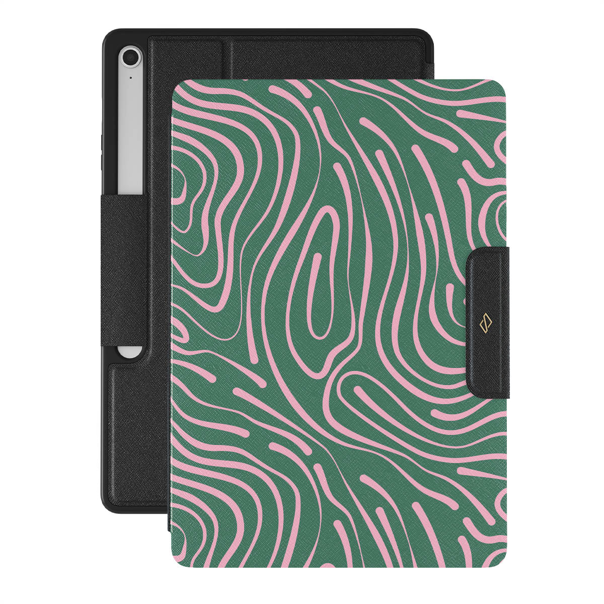 Fresh and mesmerizing, our Hawaiian Breeze Samsung Galaxy Tab S10+ FE folio case design combines a pastel pink wavy pattern with a crisp green background creating a refreshing look. The abstract pattern will indeed become a star in your accessorizing game, while the Galaxy Tab case will keep your device protected at all times!