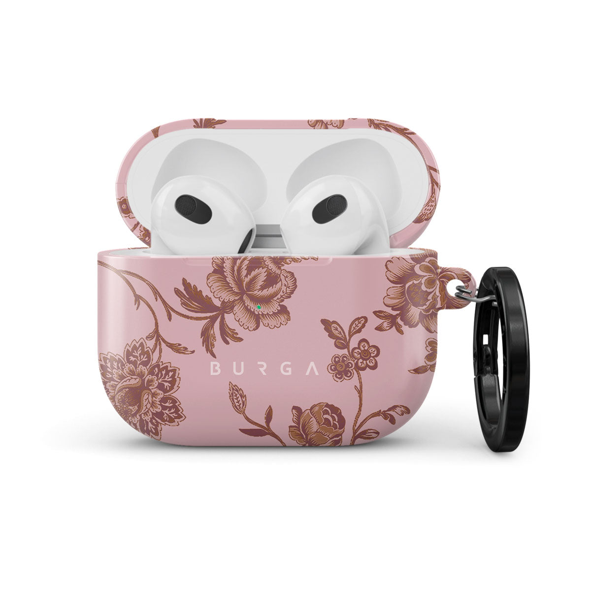The Lover AirPods 3 case cover design: because you're a Lover, not a fighter. Delicate floral motifs across a soft pink background capture the essence of timeless beauty and rustic elegance. Perfect for modern-day cowgirls with a vintage heart.