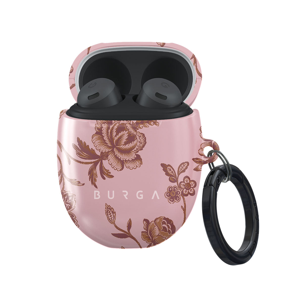 The Lover Google Pixel Buds Pro case cover design: because you're a Lover, not a fighter. Delicate floral motifs across a soft pink background capture the essence of timeless beauty and rustic elegance. Perfect for modern-day cowgirls with a vintage heart.