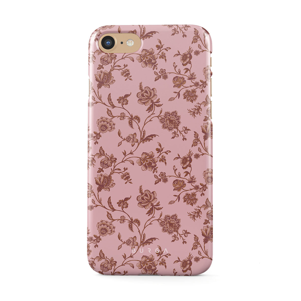 The Lover iPhone SE (2020) phone case design: because you're a Lover, not a fighter. Delicate floral motifs across a soft pink background capture the essence of timeless beauty and rustic elegance. Perfect for modern-day cowgirls with a vintage heart.