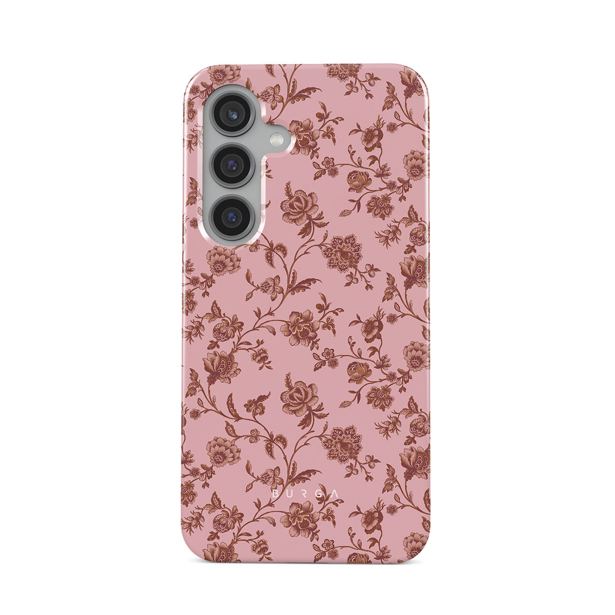 The Lover Samsung Galaxy S24 Plus phone case design: because you're a Lover, not a fighter. Delicate floral motifs across a soft pink background capture the essence of timeless beauty and rustic elegance. Perfect for modern-day cowgirls with a vintage heart.