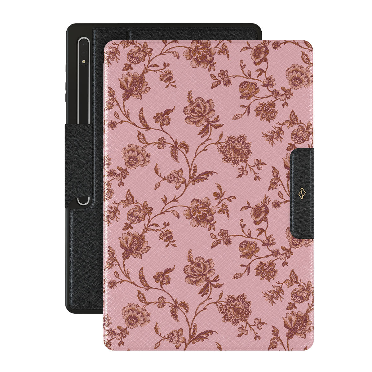 The Lover Samsung Galaxy Tab S10 Ultra folio case design: because you're a Lover, not a fighter. Delicate floral motifs across a soft pink background capture the essence of timeless beauty and rustic elegance. Perfect for modern-day cowgirls with a vintage heart.