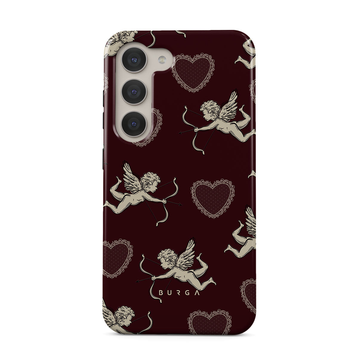 This Samsung Galaxy S23 Plus phone case design captures the dizzy rush of falling in love—the playful flutter of Cupids and the steady beat of crimson hearts. Lovestruck is a celebration of passion’s first spark, that wild, uncontainable energy that makes your heart race and your soul sing.