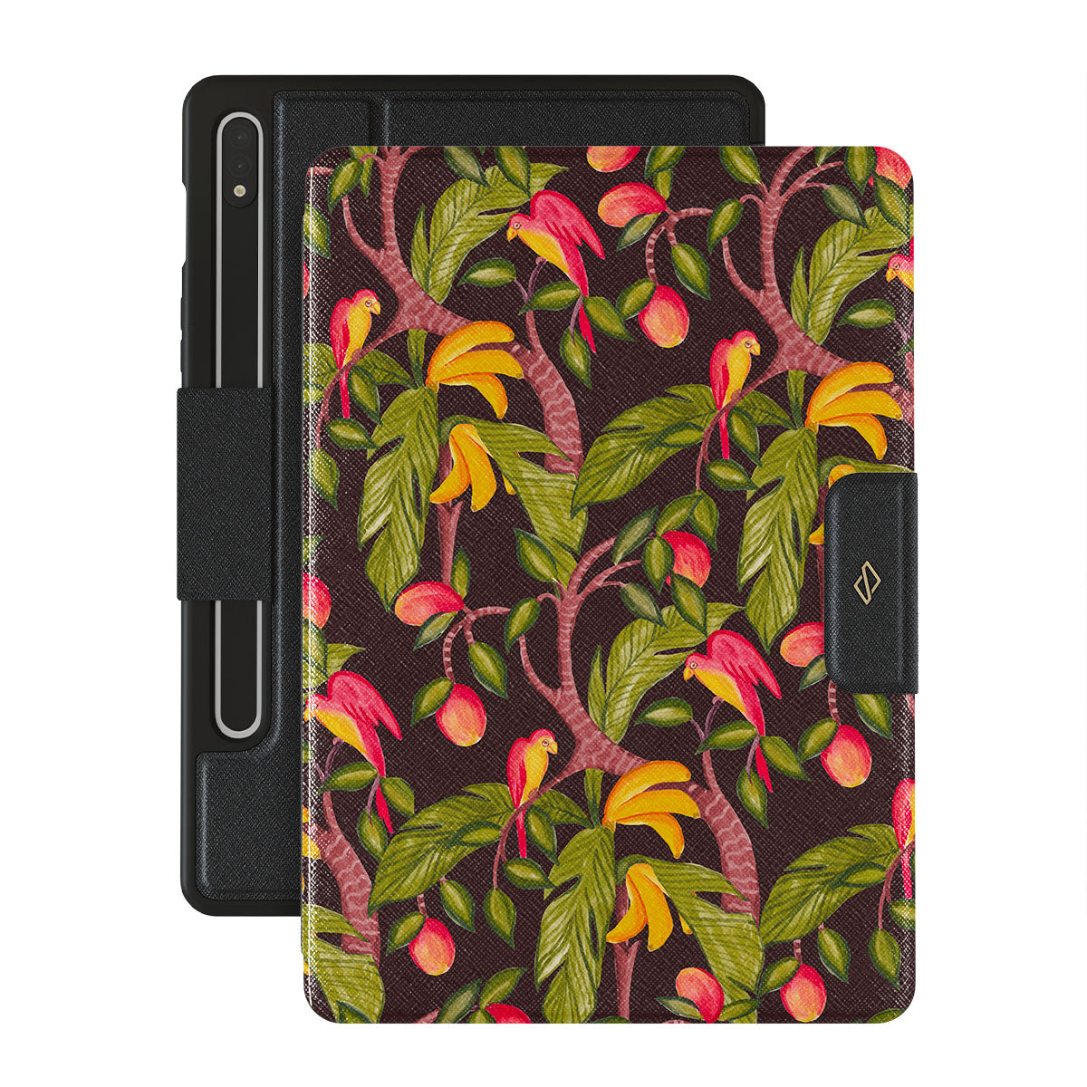 A lush botanical fantasy where ripe mangoes hang like forbidden fruit. Deep greens and juicy oranges pull you into a tropical escape. If this Samsung Galaxy Tab S8/S7 design had a voice, it would purr.