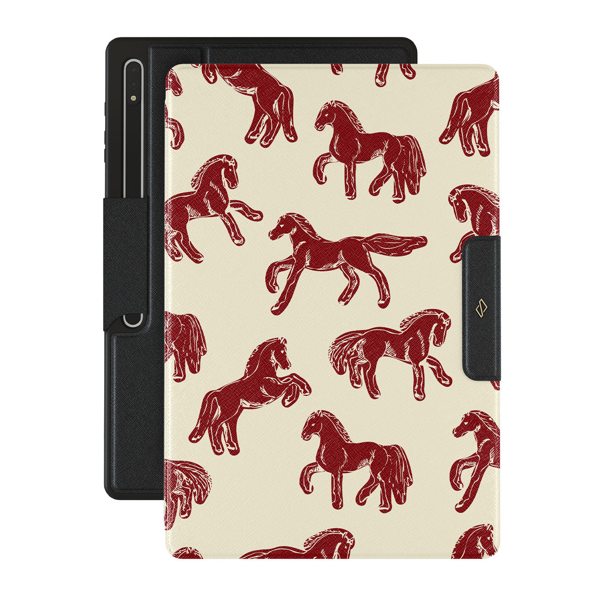 It's time to unleash your wild side with the Mustang design. Bold red horses gallop across a nude background, capturing the spirit of untamed adventure. This Samsung Galaxy Tab S10 Ultra folio case is perfect for the free-spirited souls ready to ride into the unknown.