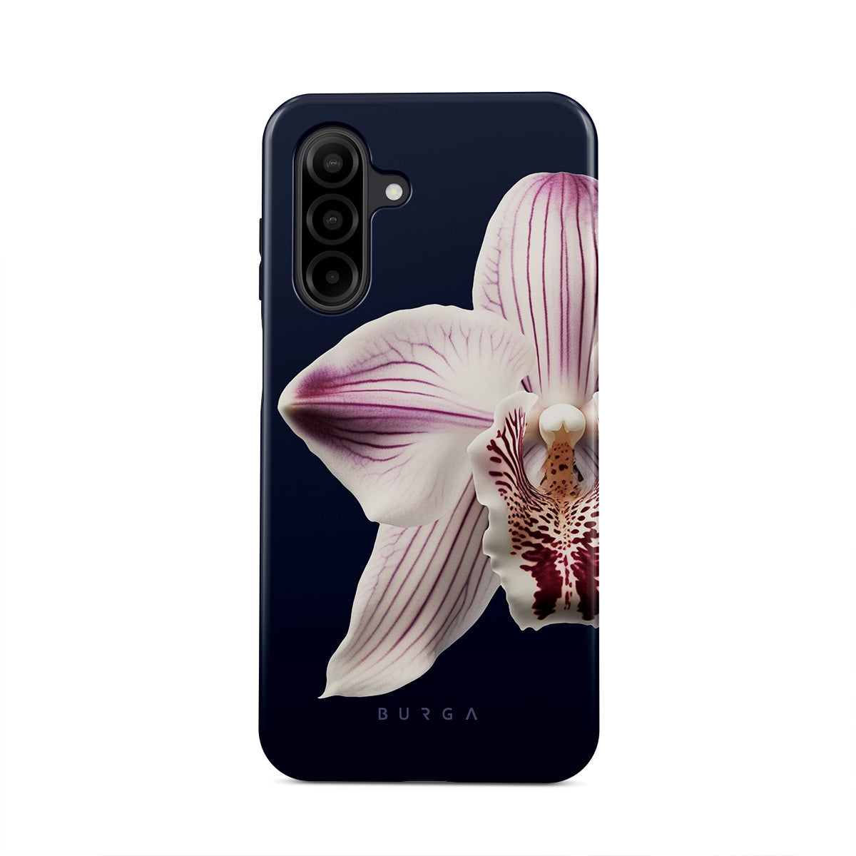 The white orchid blooms boldly upon a night sky blue, a beacon of clarity in the darkness. Our Nectar Samsung Galaxy A26 5G phone case design speaks to the soul's desire to find light within, to illuminate the hidden paths of self-discovery that only reveal themselves under the cloak of introspection.