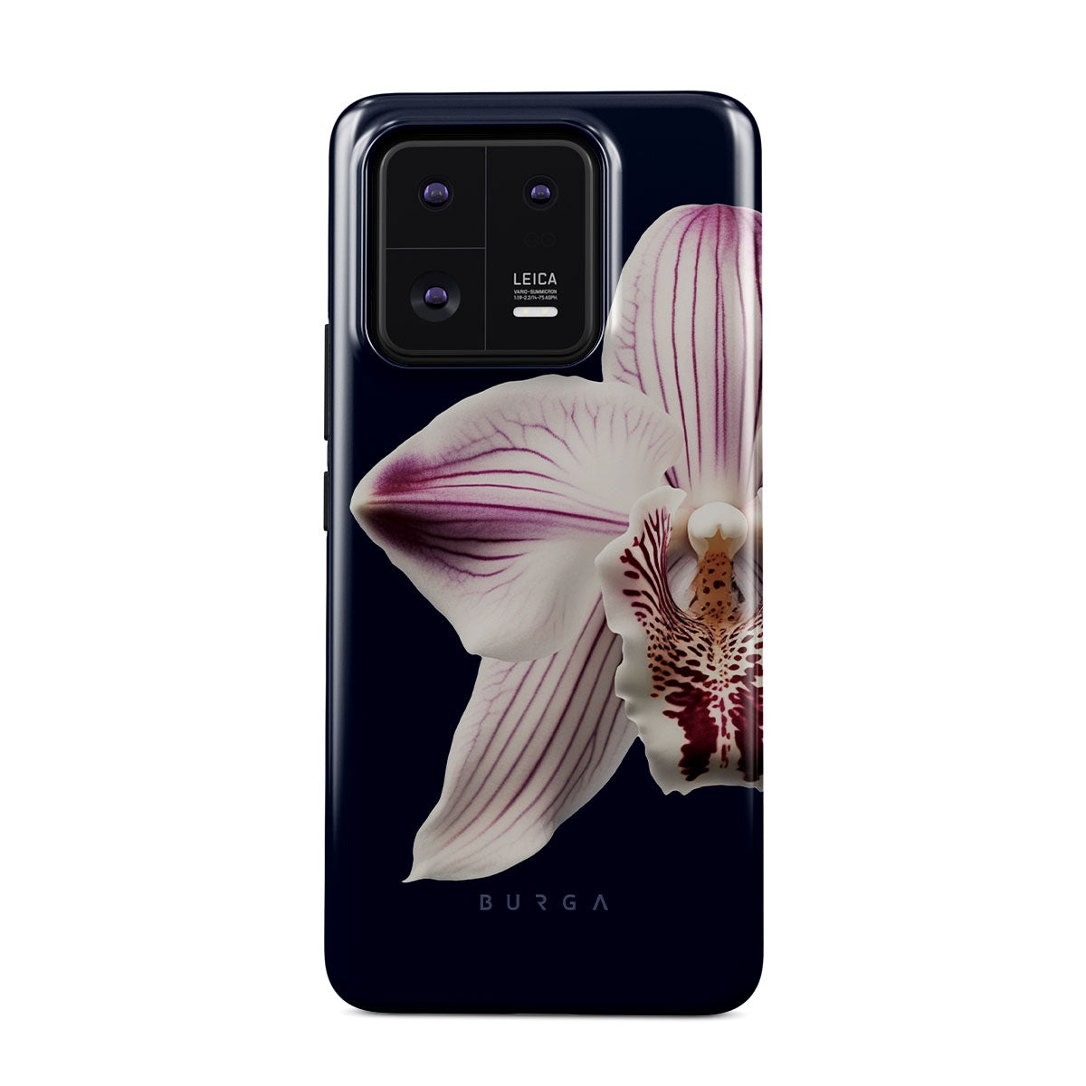 The white orchid blooms boldly upon a night sky blue, a beacon of clarity in the darkness. Our Nectar Xiaomi 13 Pro phone case design speaks to the soul's desire to find light within, to illuminate the hidden paths of self-discovery that only reveal themselves under the cloak of introspection.