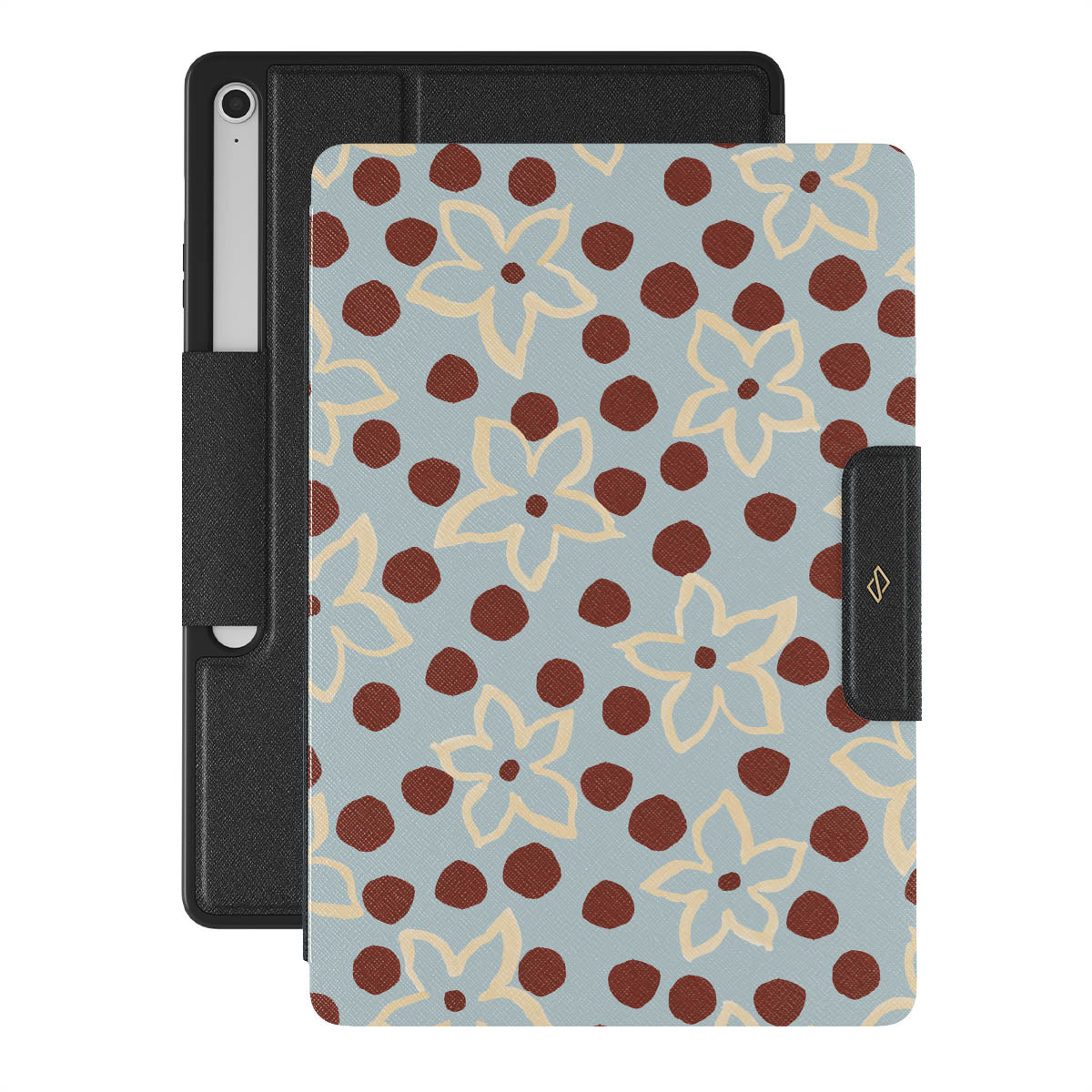 The Frutaria Samsung Galaxy Tab S10+ FE design: retro surf motel wallpaper meets vintage ceramics. The soft florals, earthy dots, and cool-toned palette give major “forgotten seaside town in the ‘70s” energy.