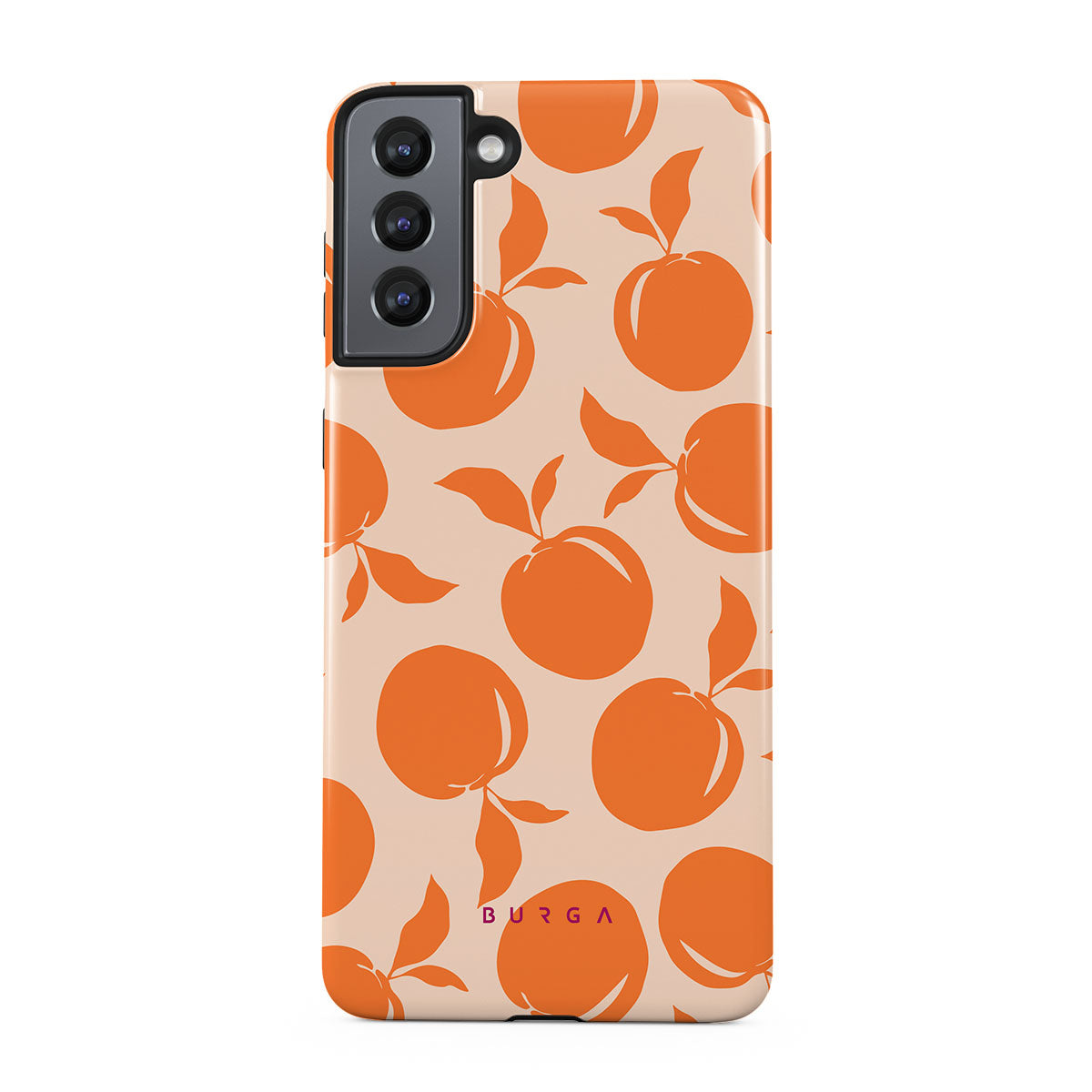 Picture a sun-soaked grove where ripe, juicy peaches glow with a radiant orange vibrance, their succulent aroma filling the warm air. Our Peach Fuzz design infuses your Samsung Galaxy S21 phone case with a lively, sun-kissed charm, perfectly capturing the essence of carefree, joyful summer days.