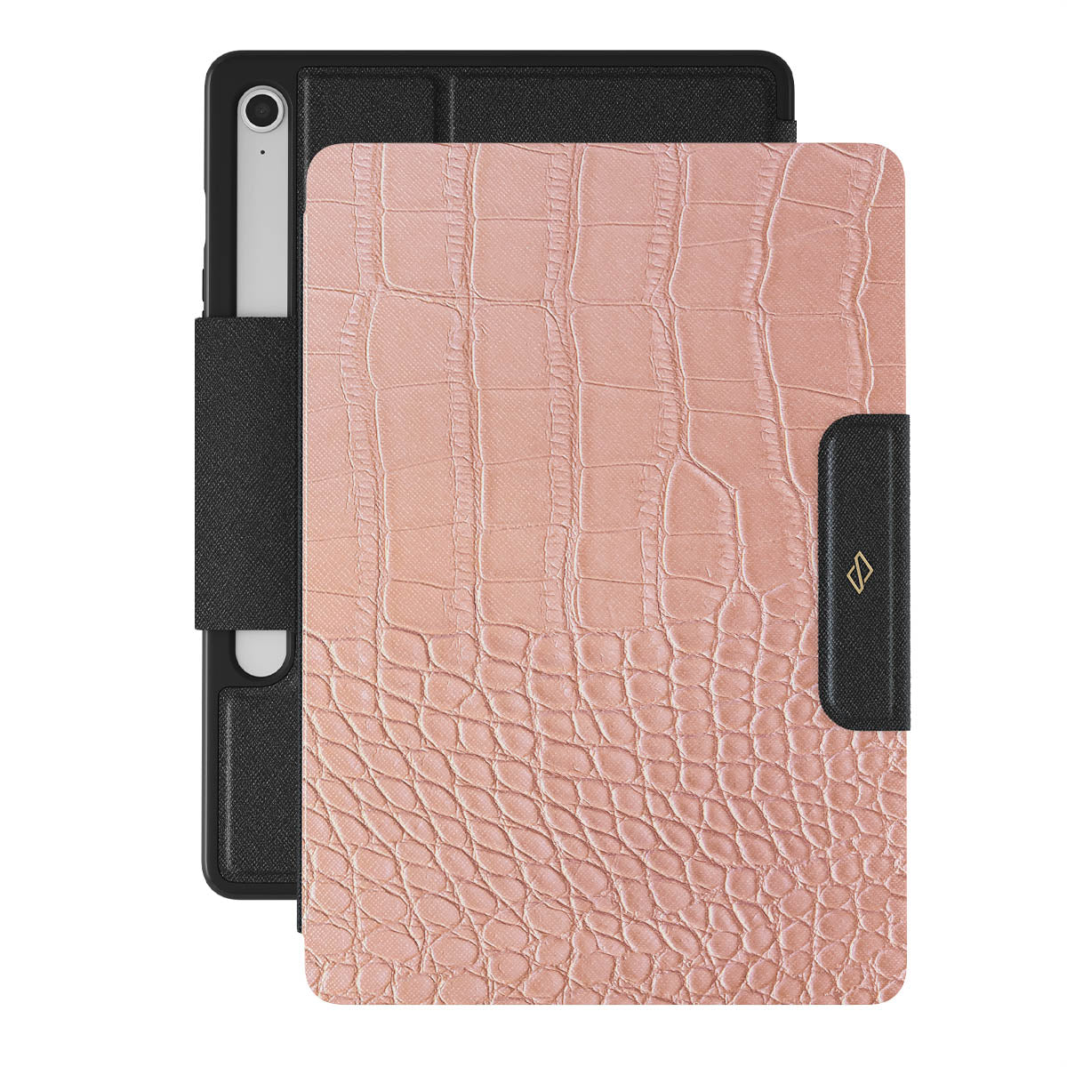 Our Pink Croco-it is a printed pattern * Samsung Galaxy Tab S10 FE folio case features a classic crocodile design reimagined and showcased in a soft coral shade. The new take on the dangerous animal print will add a touch of softness to your style while simultaneously offering heavy-duty protection to your device.