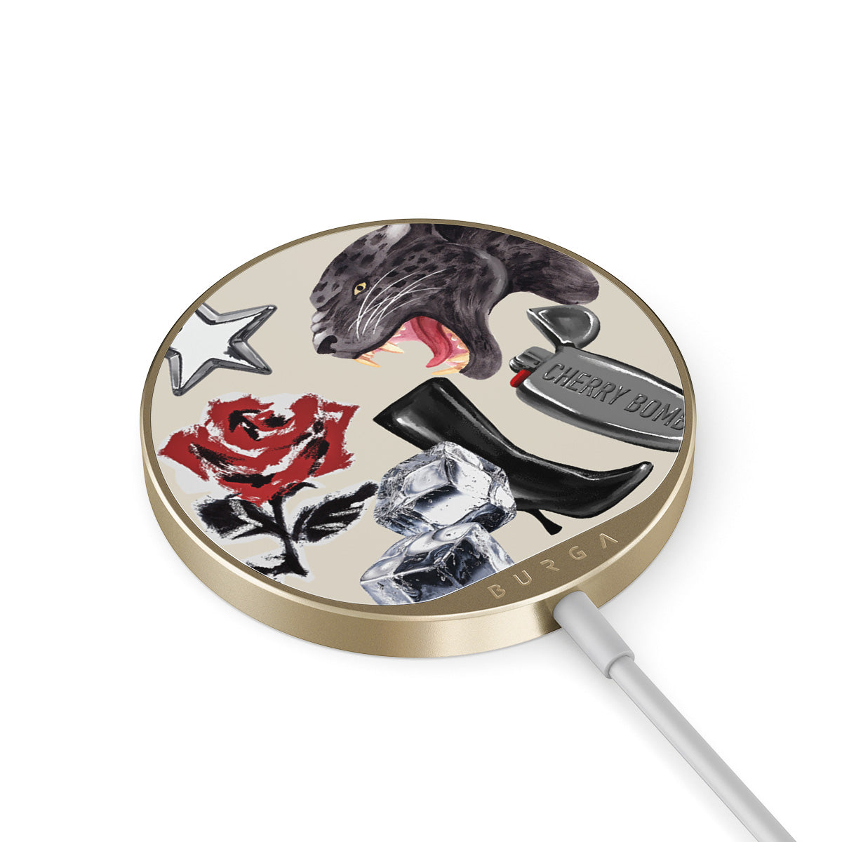 The 1.5m integrated cord makes it easy to charge wherever you are — at the office, chillin’ on the sofa, or killing time at the airport lounge. Plus, the BURGA glass back gives you 500+ prints to choose from, so your charger looks as good as your case.