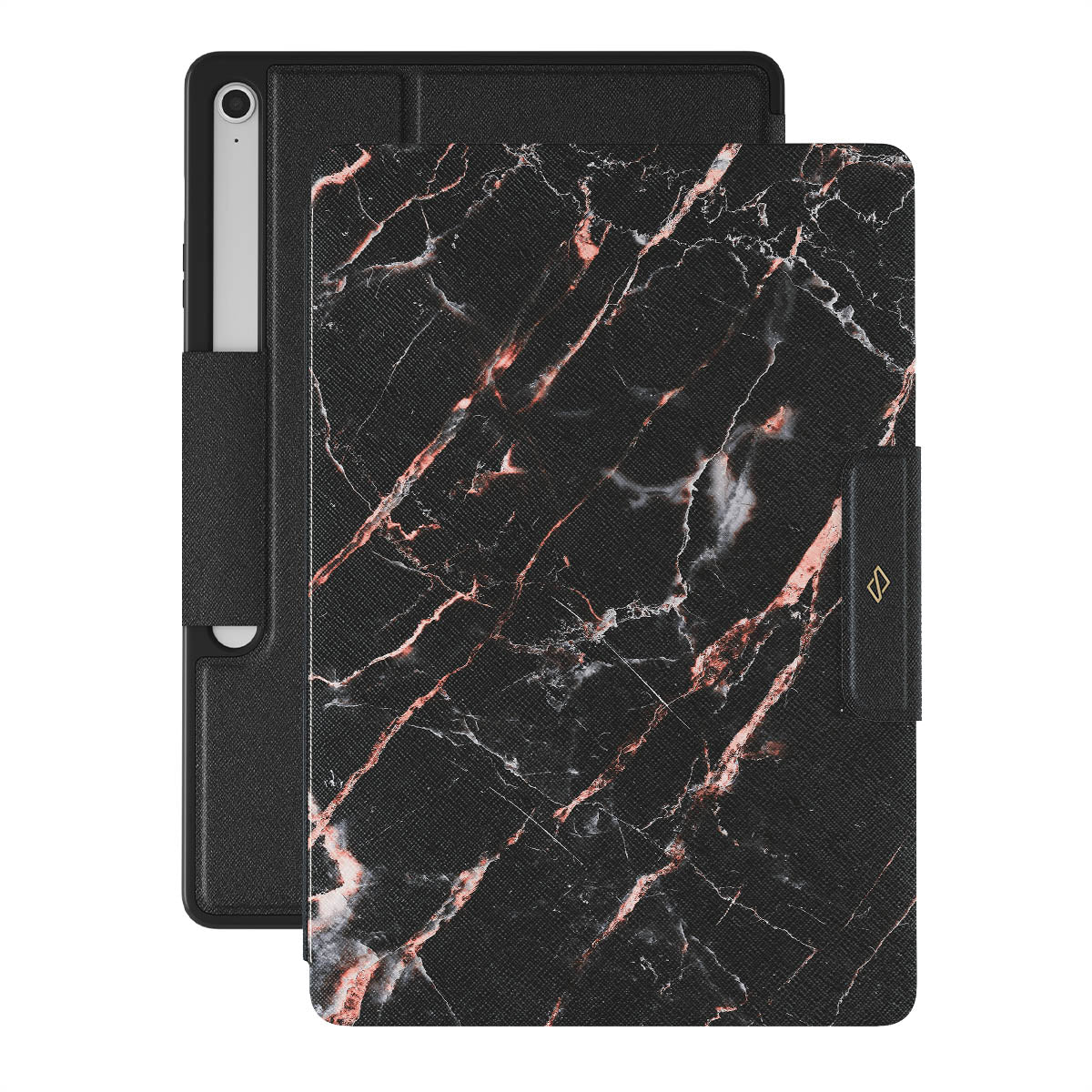 With our Rose Gold Marble Samsung Galaxy Tab S10+ FE folio case cover, enjoy the contrasting light in design emphasized in the best marble way. Luxury case with a touch of a pretty pink that protects your Galaxy Tab – an absolute game-changer.