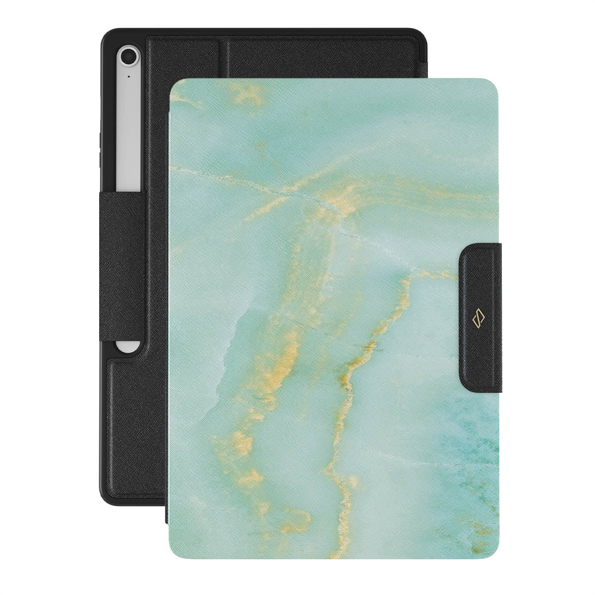Take the vacation memories with yourself. Now you can find the sandy shore and beautiful water in our pastel Sea Salt Samsung Galaxy Tab S10+ FE folio case design. The delicate marble pattern that combines with pretty pastel colors adds a soft touch to your device while protecting it from falls.