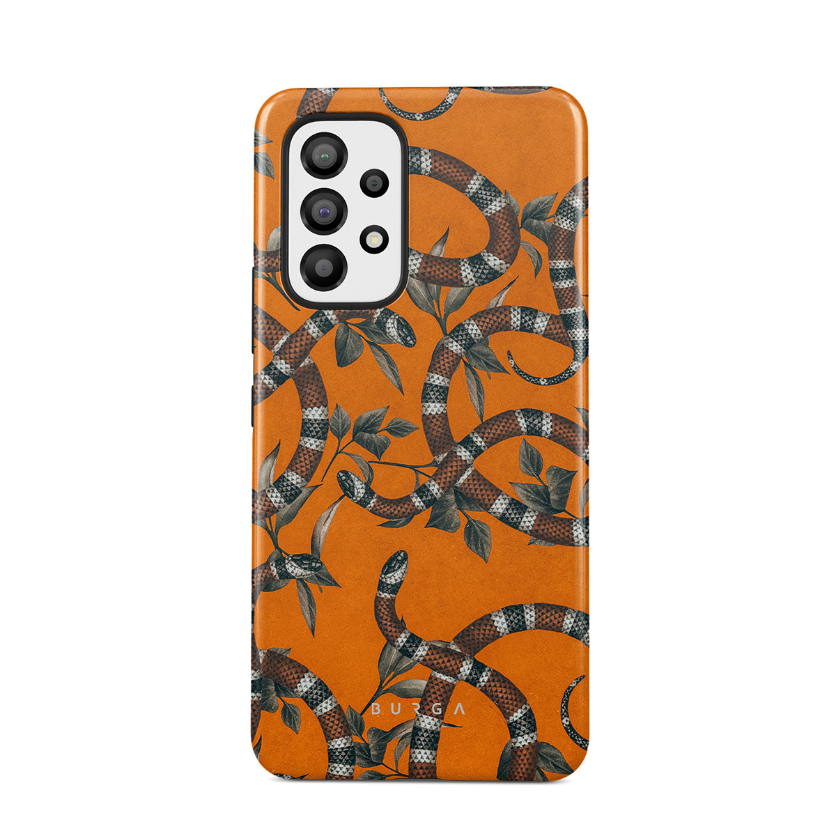 Take a bit of fierceness with yourself with our bright orange and dangerously beautiful Samsung Galaxy A23 4G / 5G phone case with a snake pattern. This case is real eye candy for fashion lovers and just as needed for those who strive to keep their phones protected.