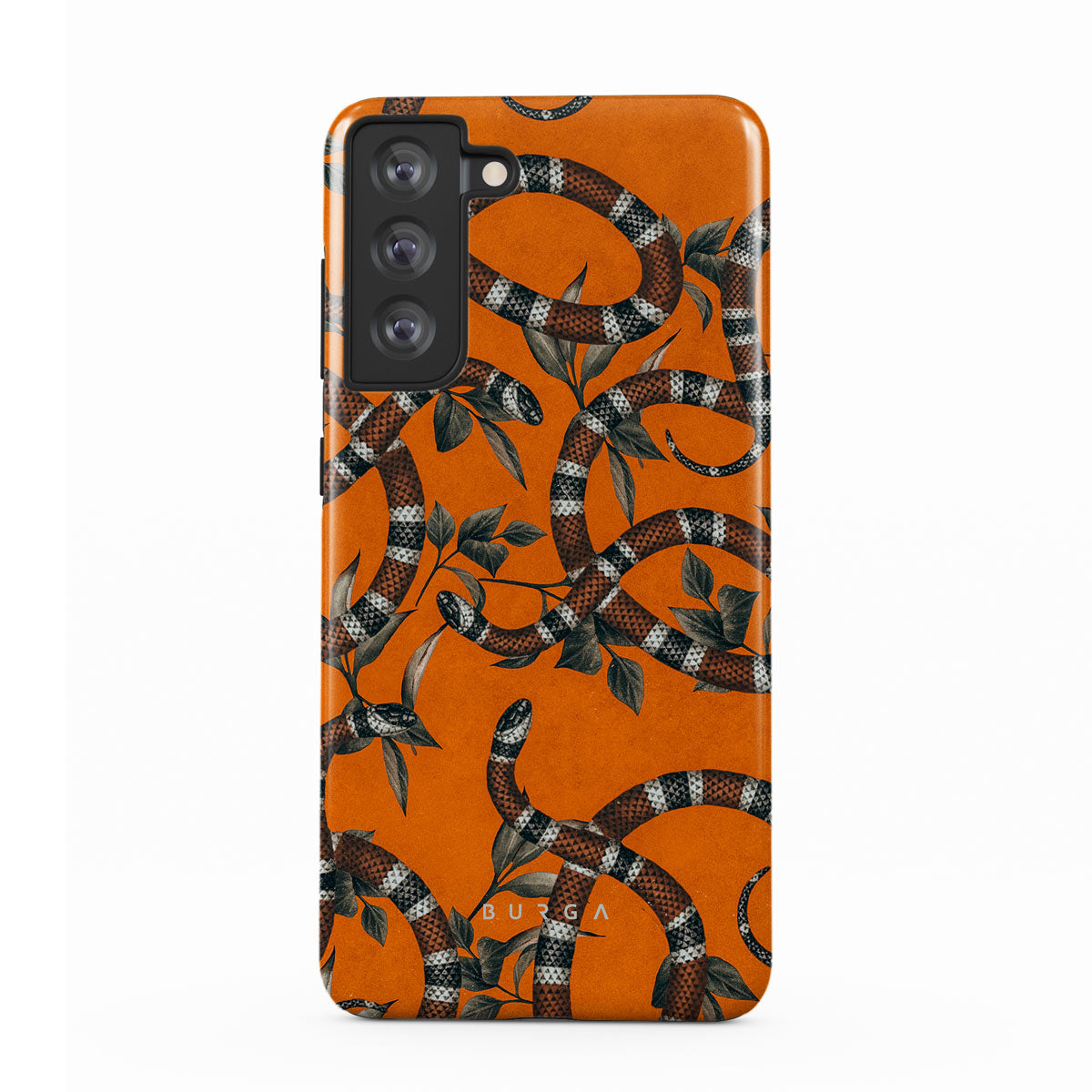 Take a bit of fierceness with yourself with our bright orange and dangerously beautiful Samsung Galaxy S21 FE phone case with a snake pattern. This case is real eye candy for fashion lovers and just as needed for those who strive to keep their phones protected.
