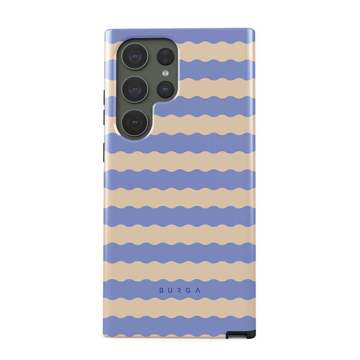 Dive into the cool, refreshing style of our Splash design–a dynamic Samsung Galaxy S23 Ultra phone case featuring playful, wavy stripes of serene ocean blue and soft sandy beige. Perfect for those who love to make a splash with their accessories.