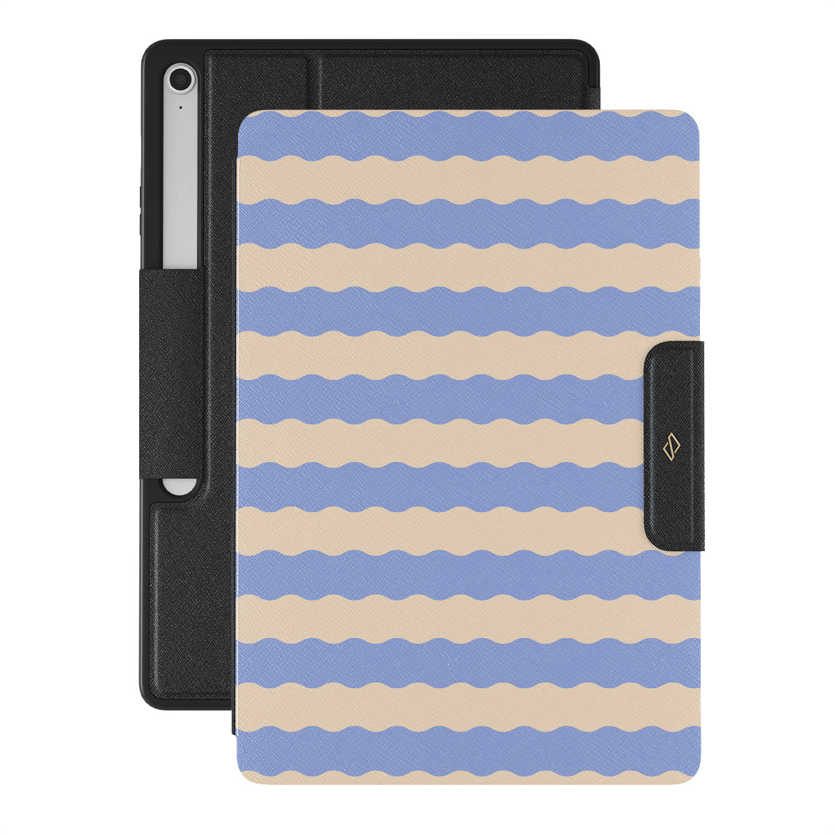 Dive into the cool, refreshing style of our Splash design–a dynamic Samsung Galaxy Tab S10+ FE folio case featuring playful, wavy stripes of serene ocean blue and soft sandy beige. Perfect for those who love to make a splash with their accessories.