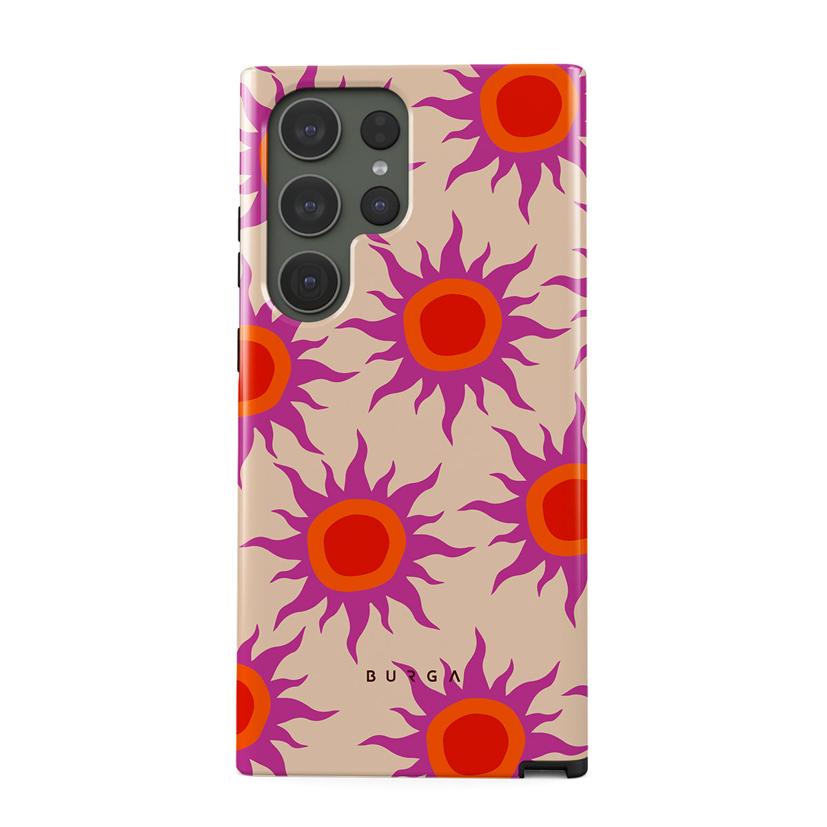Discover the radiant serenity of the Sunset Glow design, a harmonious blend of soothing pastels and fiery suns. Vivacious viva magenta rays add a playful touch, perfectly balancing tranquility and dynamism. More than just a fashion accessory, this striking Samsung Galaxy S23 Ultra phone case mirrors your unique personality and zest for life.