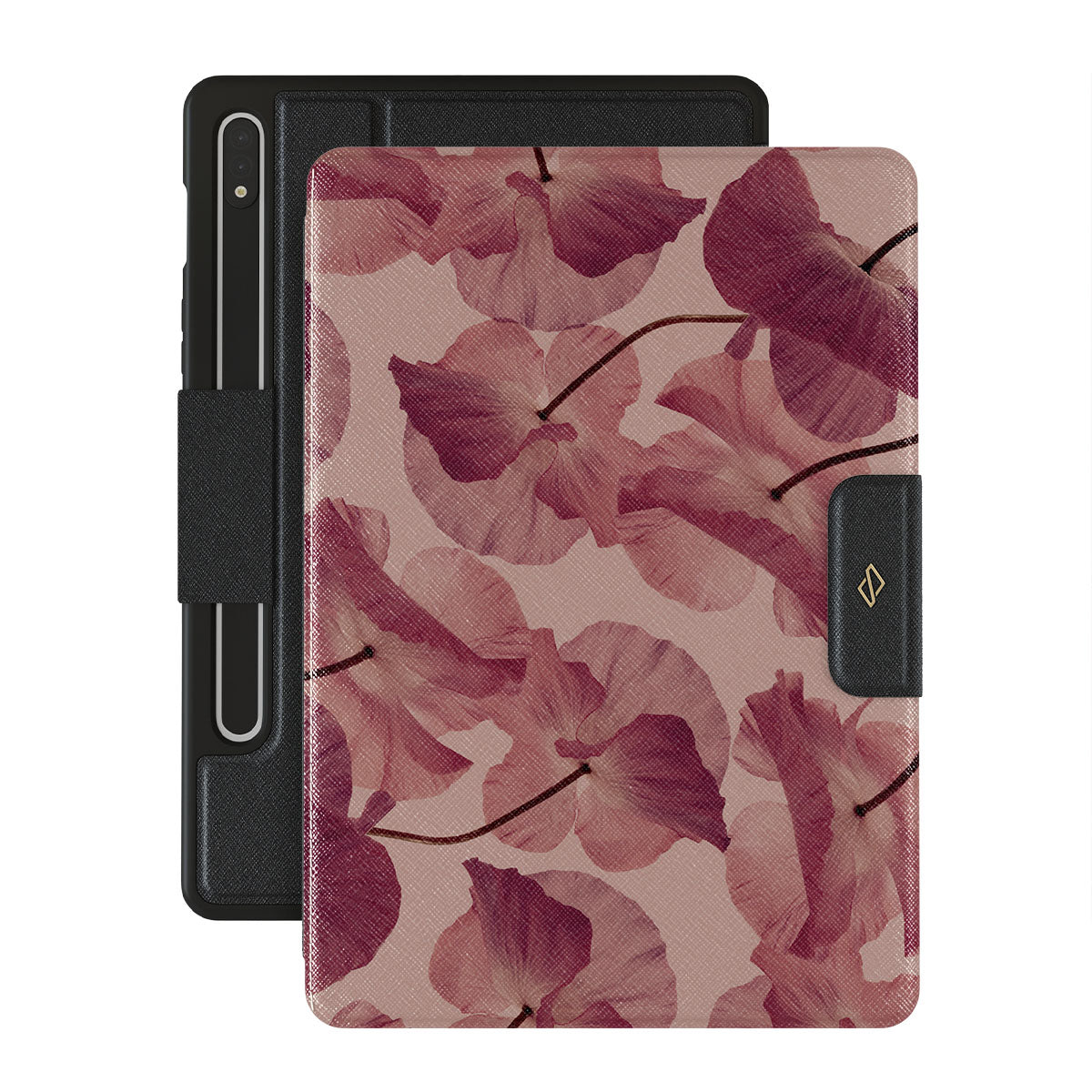 Capture the sweetness of a first love with Tender Kiss — a design that combines the delicate touch of petals on a soft pink background. This Samsung Galaxy Tab S9 FE folio case design is crafted for those who cherish the tender moments and the dreamy whispers of a romantic past.