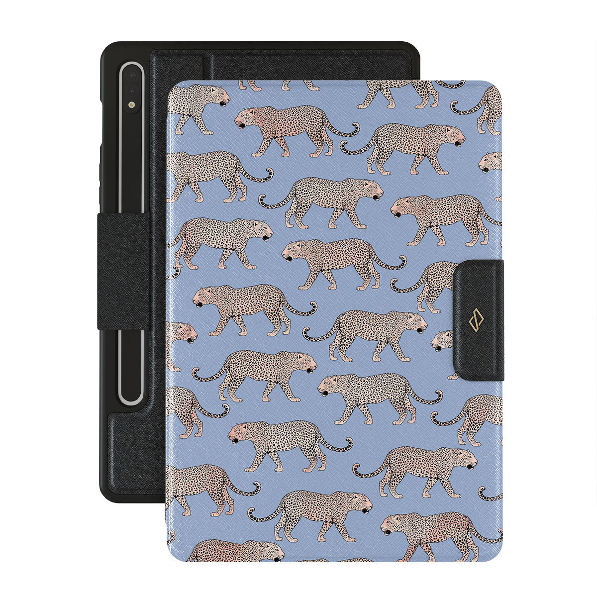 Be wild and free with our Tourist Trap Samsung Galaxy Tab S8+/S7+/S7 FE folio case. The tiger print in a pastel blue background has a chick feel of an actual designer item. Add some edge to your style and also protect your Galaxy Tab from any sharp edges at the same time.