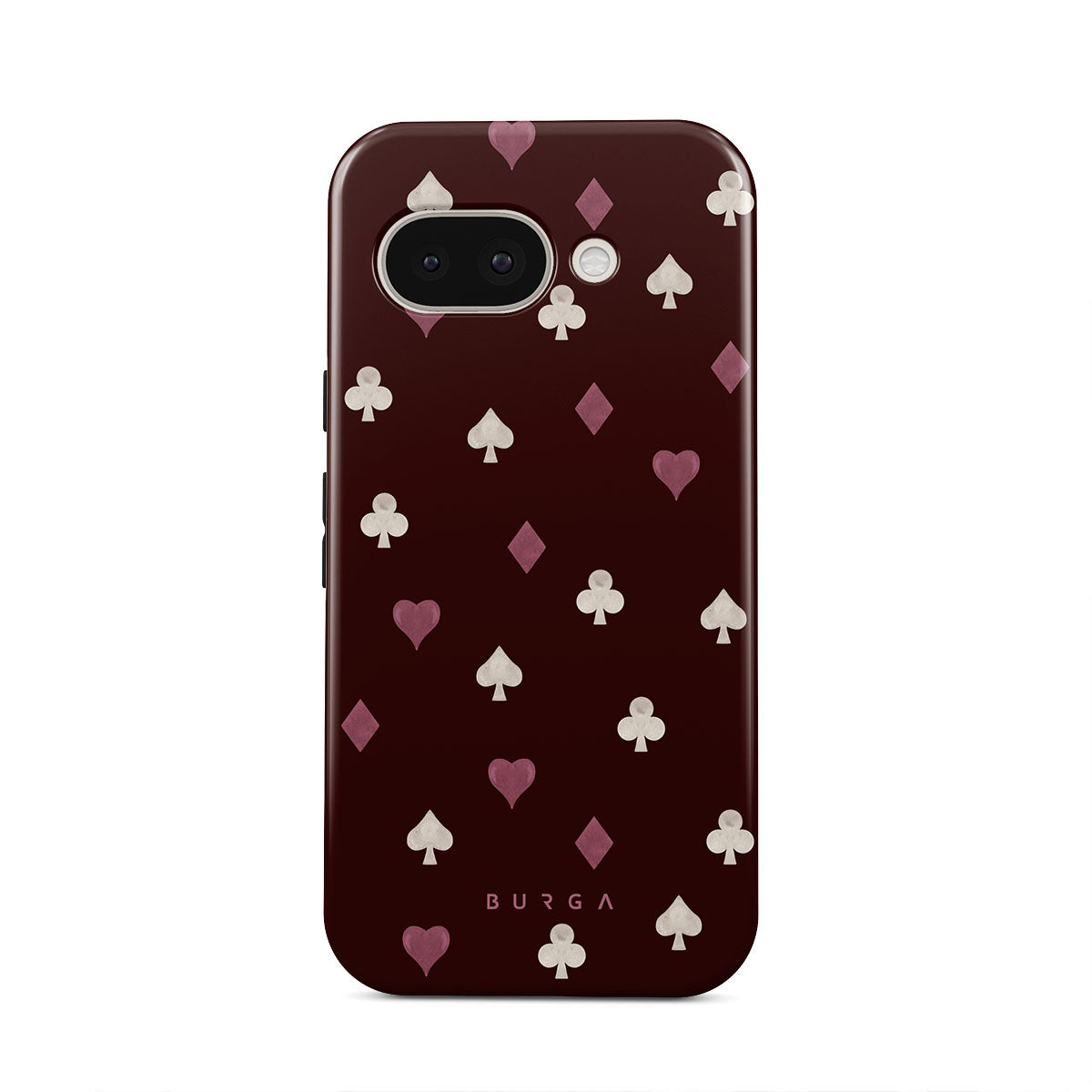 Nothing is as it appears. Hearts, clubs, diamonds, and spades—stacked in your favor or playing against you? This Google Pixel 9a phone case design features a rich burgundy background and minimalist suits that make for a game where the rules are constantly shifting.