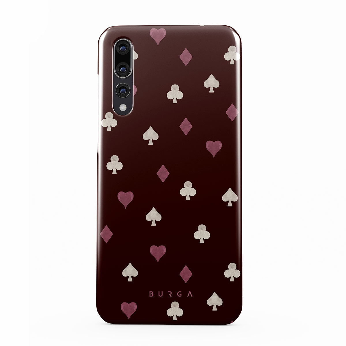 Nothing is as it appears. Hearts, clubs, diamonds, and spades—stacked in your favor or playing against you? This Huawei P20 phone case design features a rich burgundy background and minimalist suits that make for a game where the rules are constantly shifting.