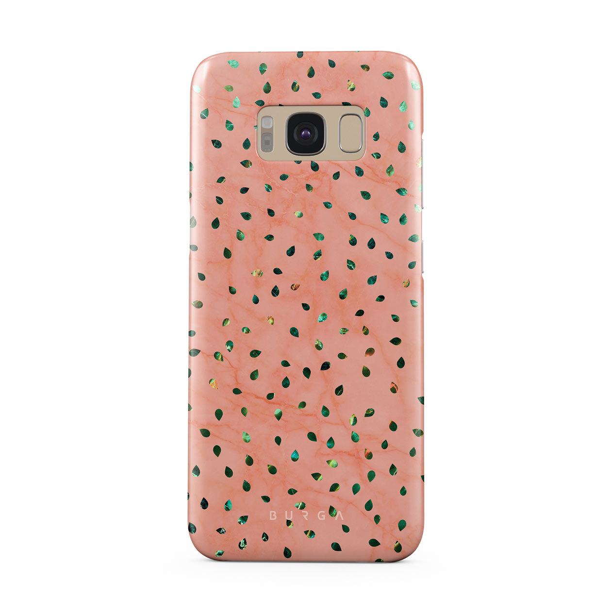 The Watermelon Shake Samsung Galaxy S8 phone case offers a playful take on design merging. The watermelon seed-like specks showcase striking tropical design fragments that add a splash of color to the fresh and breezy coral pink marble. This way, the funny protective phone cover becomes a perfect statement piece for your summer outfits.