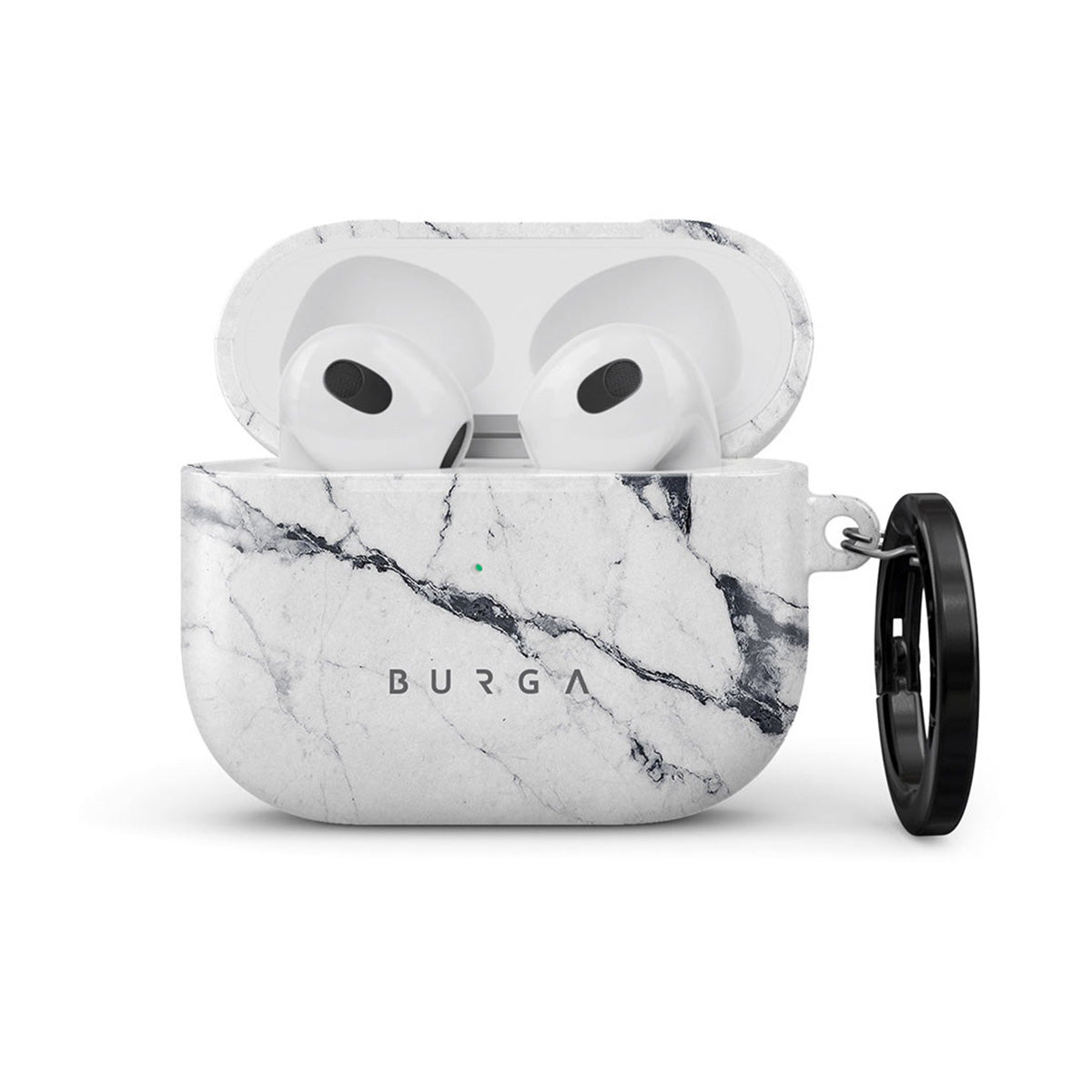 Add a timeless white marble pattern to your accessory collection with our Satin White Apple Airpods 3 case cover. Keep your AirPods safe and sound in the snug-fitting case cover that will protect them while also adding a touch of timeless classic to your wardrobe. Our case fits perfectly snug around Apple Airpods 3 . “Like a glove!” one might say. And it won’t disrupt the wireless charging capabilities of the newer model. There’s even an LED light indicator to prove it (don’t worry, wired charging still works, too). When fitted, the BURGA case will protect the delicate Apple Airpods 3 case beneath it from scratches, bumps, and drops while remaining scratch-free itself. Our signature design pattern prints are High Quality, and will never peel or fade away- thanks to our unique printing technology. And finally, a handy carabiner is there to make your life easier and more convenient: just snap it around your keys or belt loop and tackle the day head-on. Your music is right there by your side when you need it.